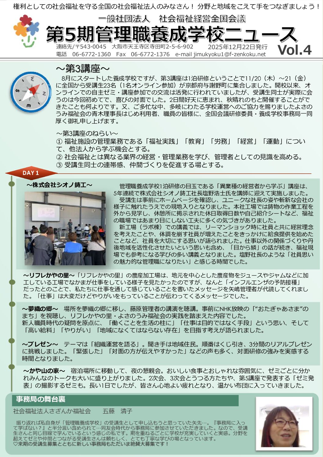 2025年度第5期管理職養成学校ニュース 学校の様子をニュースを通じてお伝えします。ご覧ください。 【Vol.1】第5期管理職養成学校ニュース_(開校式) 【Vol.2】第5期管理職養成学校ニュース_(第1講座) 【Vol.3】第5...
