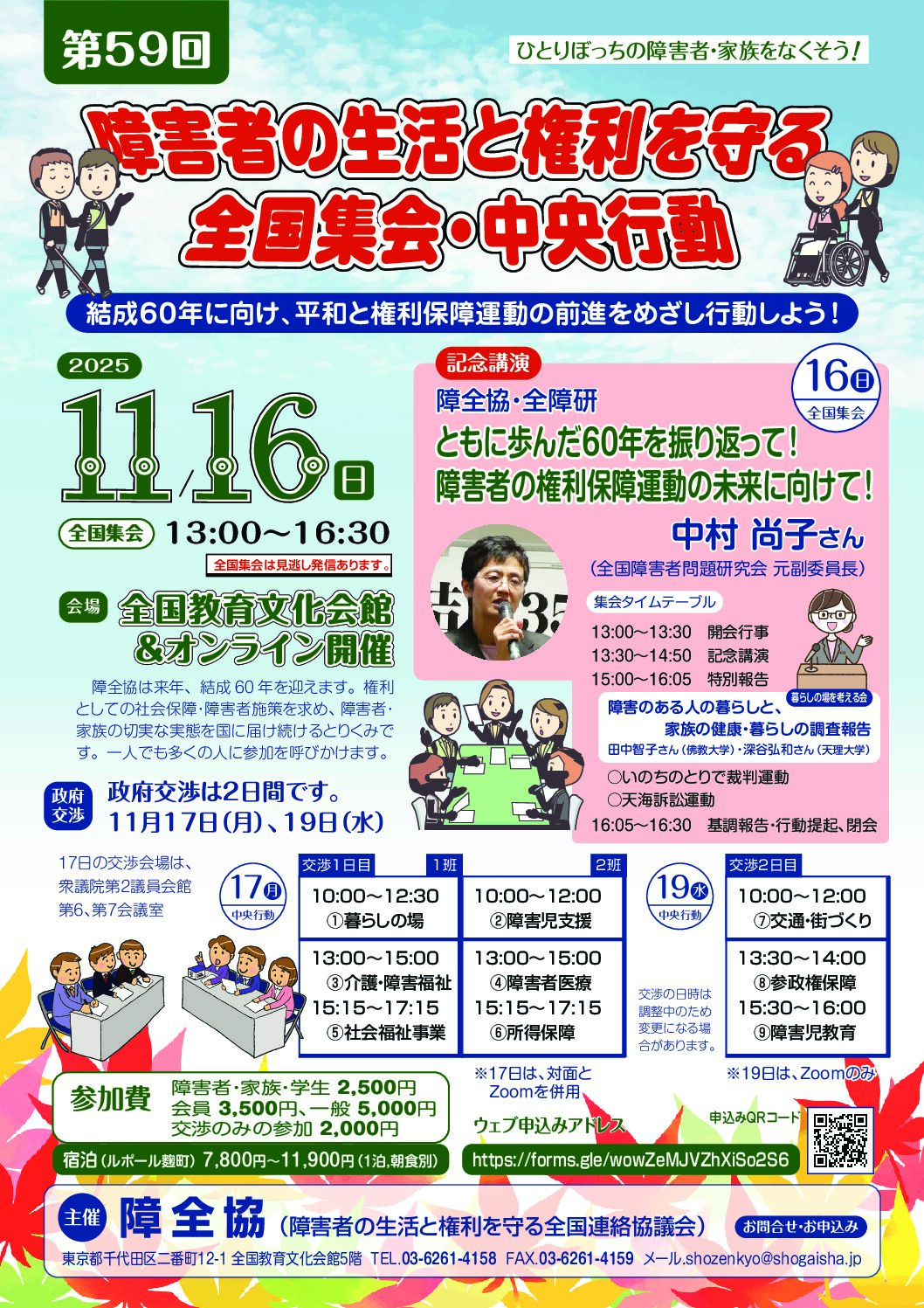 さて、障全協第59回全国集会・中央行動を11/16日,