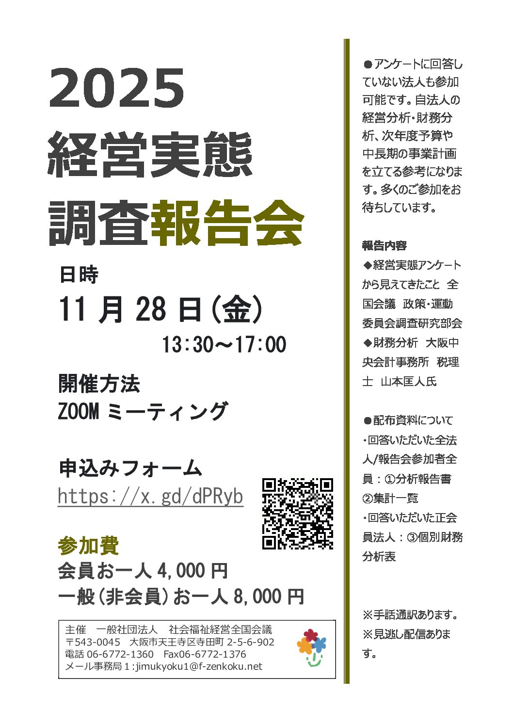 2025年経営実態調査にご協力をありがとうございました。今回取り組みました経営実態調査、決算からの、分析結果報告会(zoom)を開催します。 ●アンケートに回答していない法人も参加可能です。自法人の経営分析・財務分析、次年度予算...